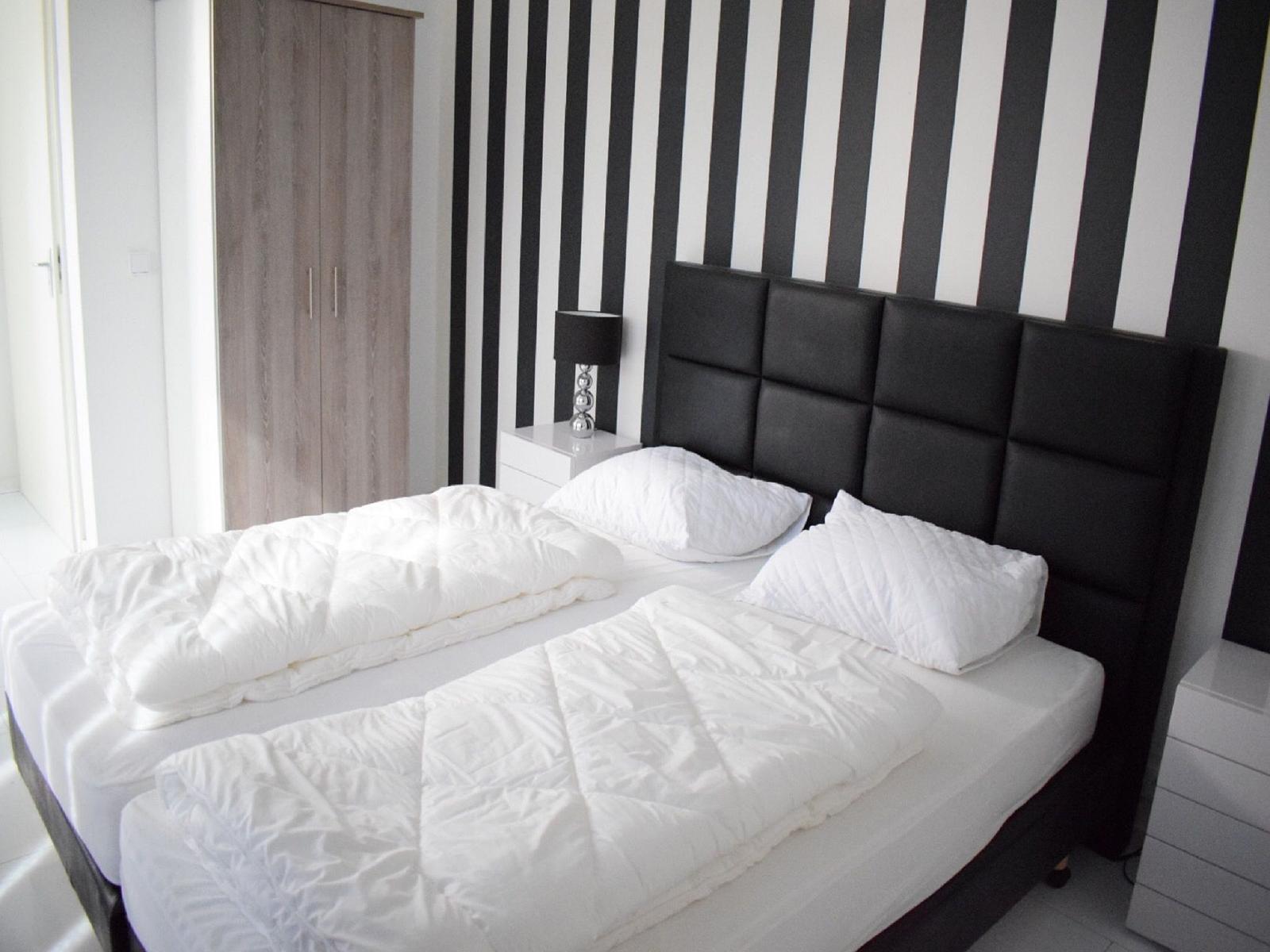 Deze nieuwgebouwde villa beschikt over twee ruime slaapkamers en twee luxe badkamers, perfect voor een comfortabel verblijf met familie of vrienden. Een slaapkamer voor twee personen, en een slaapkamer voor drie personen. Er is ook een aparte toilet die zorgt voor extra comfort. De open en lichte woonkamer is stijlvol ingericht en sluit naadloos aan op de keuken met kookeiland. Er is ook een kamer met fitness; comfort, privacy en beweging komen hier perfect samen om te sporten wanneer het jou uitkomt.