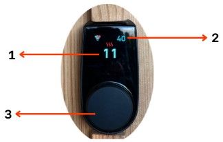 Het display zal aangaan door de ronde knop kort in te drukken en zal gedurende het verwarmingsproces aanblijven.